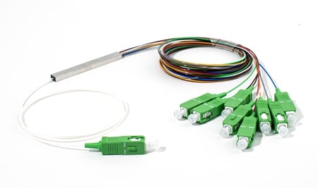A micro-type PLC splitter is similar to a bare fiber splitter. A micro-type PLC splitter differs from a bare fiber splitter because it uses a small stainless steel tube packaging that often ends with a fiber optic connector.
